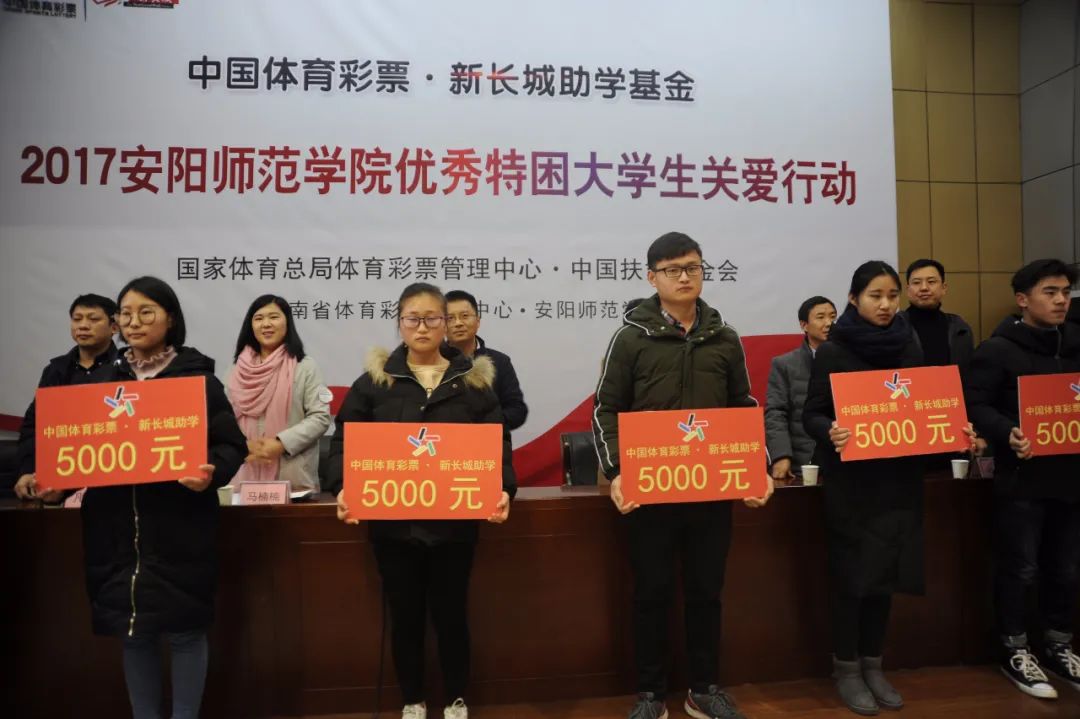 据悉,“中国体育彩票•新长城助学基金”是中国体育彩票自2005年起开展的一项全国大型公益助学项目,主要目的是为优秀困难大学生和他们的家庭减轻经济压力,帮助大学生顺利完成大学期间的学业。助学项目捐助的资金虽然有限,但每一分钱都是满满的爱心种子,这些种子将在每个学生内心生根发芽,激励他们把爱心传递下去,把爱心奉献给需要帮助的人,把助人为乐的中华传统美德继续传承下去,发扬光大。 (彭振)