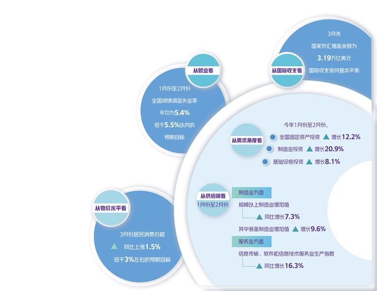 今年以来,我国经济总体运行在合理区间。从已发布的1月份至2月份数据看,经济恢复势头向好,为今年一季度开好局奠定了坚实基础。