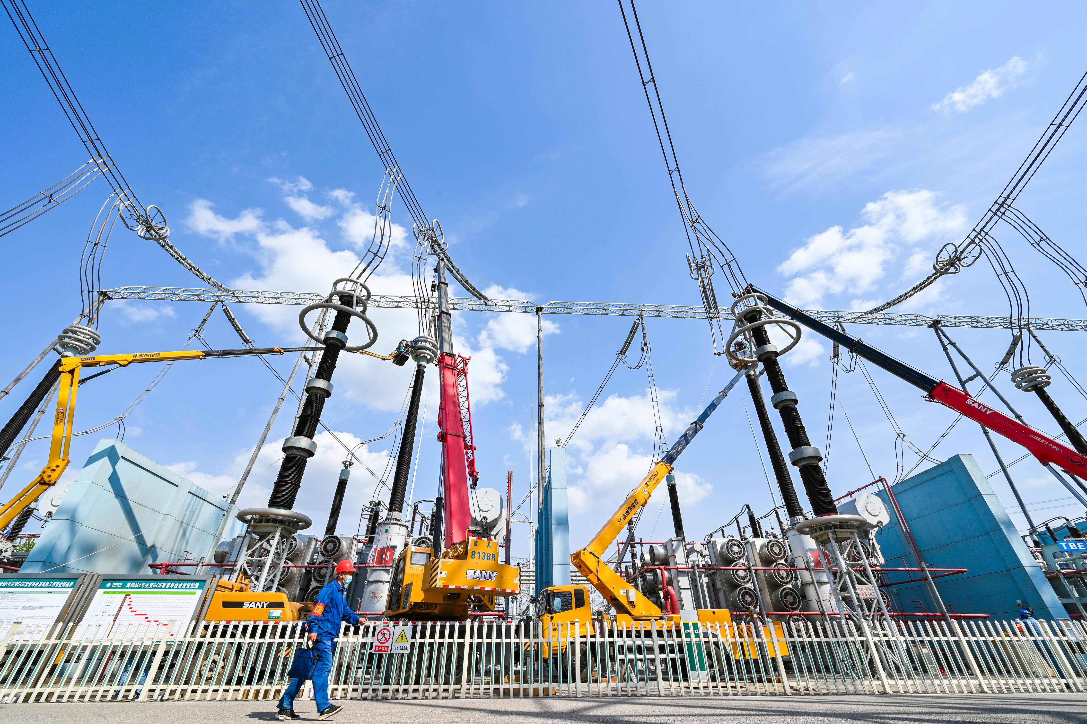 2022年4月6日,国网河南超高压公司对500千伏嵩山变电站开展设备改造,提升电网抗灾能力,确保汛期稳定供电。
