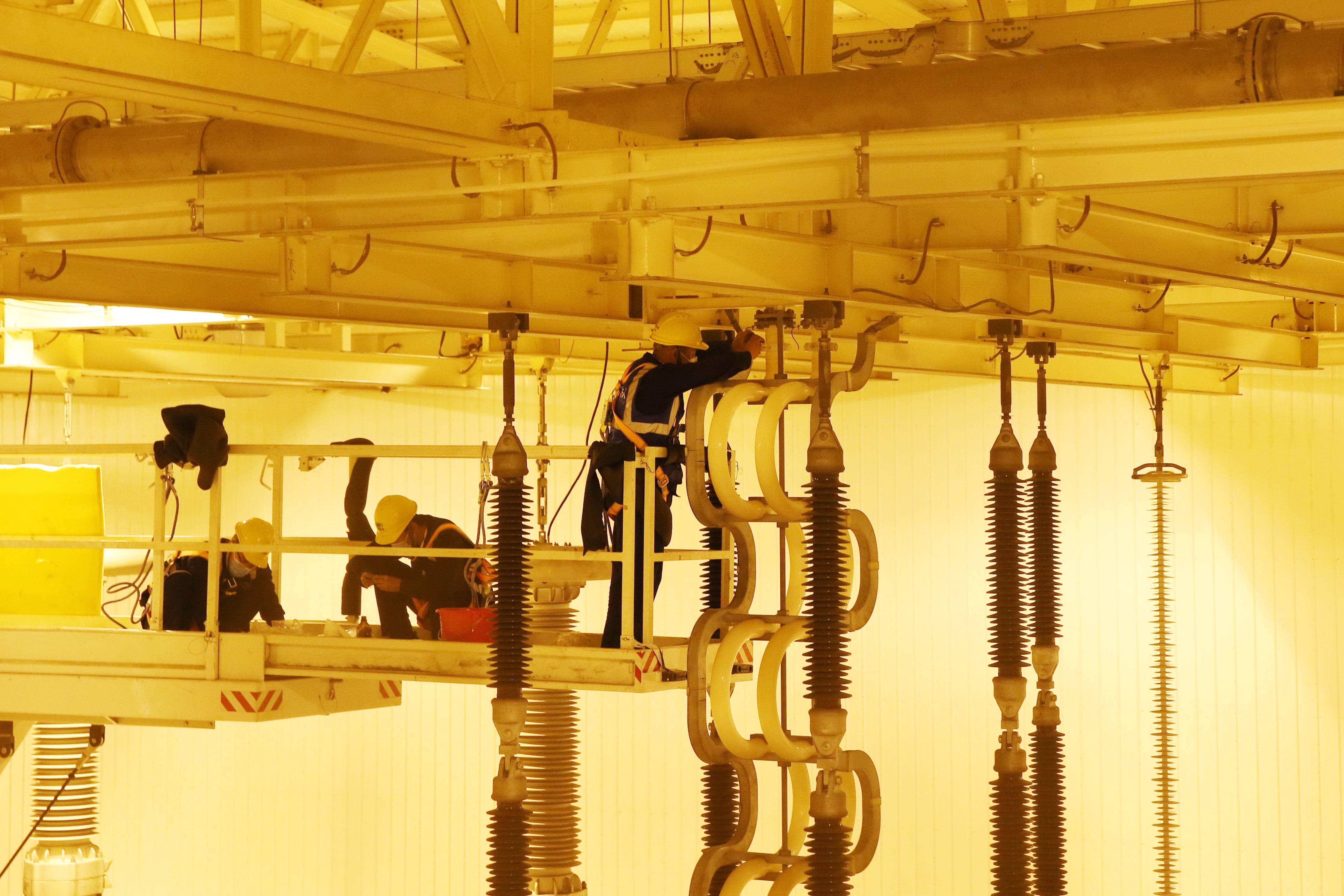 国网河南电力员工进行特高压换流变检修工作。