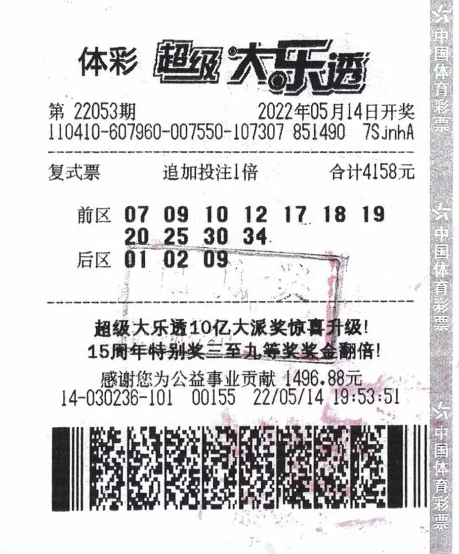 体彩超级大乐透第22053期,河南省商丘市66岁购彩者李阿姨(化姓)以一张投注金额4158元的11+3复式追加投注彩票,中得大乐透一等奖,加上其他奖级奖金后单票总奖金1311万元。5月19日上午,幸运购彩者李阿姨来到河南省体彩中心兑取了幸运大奖。