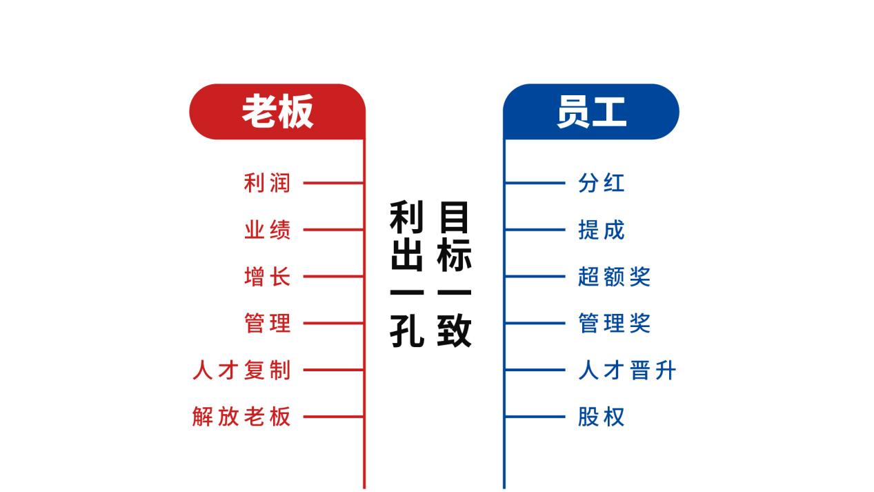 老板要通过有效的薪酬结构,把员工利益内嵌目标当中,才能实现利出一孔,目标一致,员工才会拼命达成企业的目标。