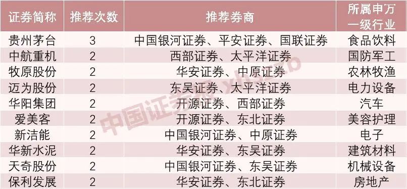 据不完全统计,目前已有安信证券、开源证券、西部证券、华安证券、浙商证券等16家券商发布了8月月度金股组合,其推荐的近160只A股及港股金股中,获得券商推荐次数居前的个股还包括中航重机、牧原股份、迈为股份、华阳集团、爱美客、新洁能、华新水泥、天奇股份、保利发展等。