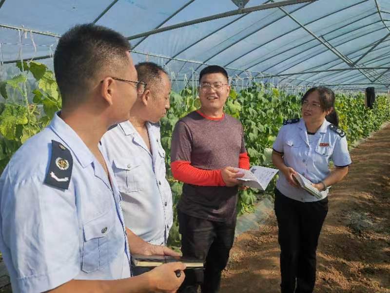 在第五届“中国农民丰收节”来临之际,河南开封杞县平城乡孙寨村种植基地里的蜜瓜喜获丰收。圆润饱满的蜜瓜挂满藤蔓,散发着清香,瓜农们忙着采摘、装箱,来自杞县税务局的“金杞税宣小分队”到农产品种植、养殖合作社宣传税费优惠政策,“一户一策”帮助解决问题,与农民、农企共庆丰收节日,共享丰收喜悦。