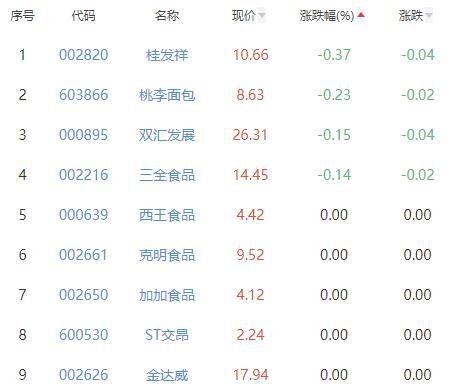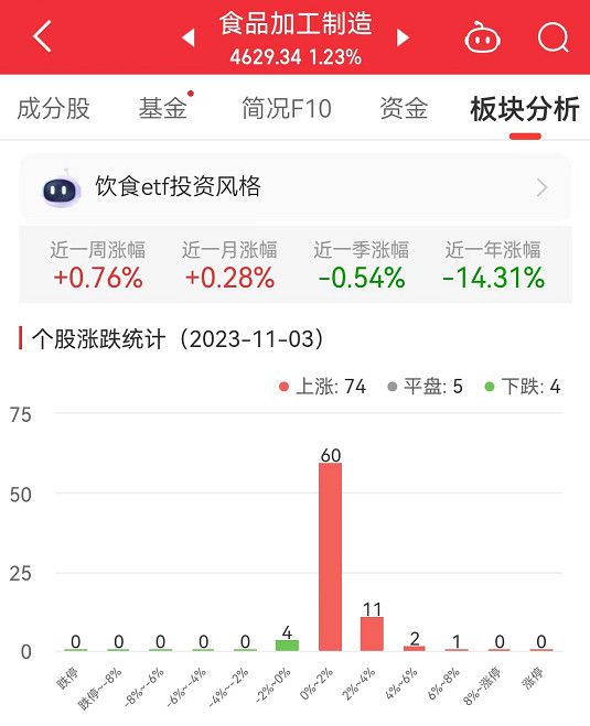 食品加工制造板块涨1.23% 莲花健康涨7.39%居首