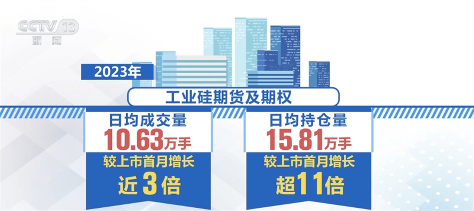 数据显示,2023年,工业硅期货及期权累计成交量2573.56万手,累计成交额15543.72万元,日均成交量10.63万手,较上市首月增长近3倍;日均持仓量15.81万手,较上市首月增长超11倍。说明了工业硅期货及期权的市场流动性、产业参与度显著提升,逐步形成了公开、透明、连续的工业硅价格信号,指导企业合理安排经营计划。