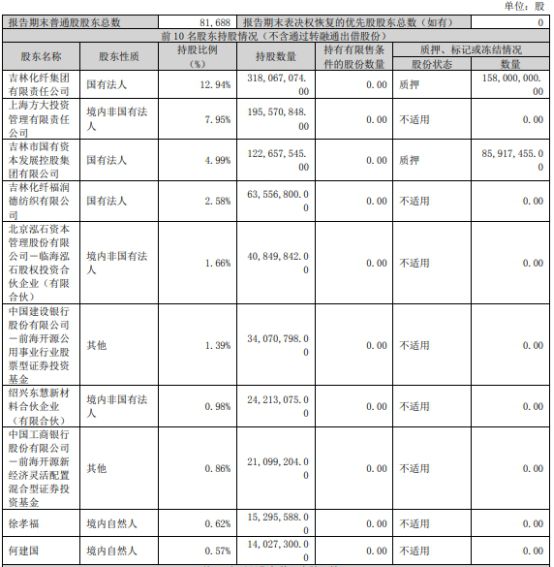 吉林化纤2024年第一季度报告显示,方大投资系吉林化纤第二大股东。