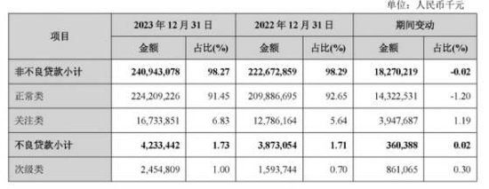 另外,截至2023末,兰州银行正常类贷款占比为91.45%,较上年末下降1.2个百分点,关注类贷款占比为6.83%,上升1.19个百分点。作为不良贷款的“预备军”,关注类贷款占比走高,意味着该行资产质量存在潜在风险。