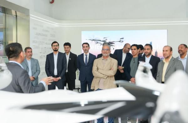 当天上午,阿联酋民航总局局长赛义夫·苏韦迪阁下带队莅临时的科技调研,阿联酋驻上海总领事穆哈纳德·纳克比阁下陪同。时的科技创始人兼首席执行官黄雍威做欢迎致辞,创始合伙人兼首席市场官蒋俊、联合创始人兼首席运营官汤晓明、联合创始人兼质量适航副总裁周龙超等陪同考察。
