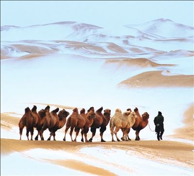 到乌海冬季大漠景区滑沙、观赏沙雕、篝火晚会;看大漠落日,山巅奇景;到阿拉善观赏雪中大漠金、红、白色交相辉映,与沙丘道道柔美弧线成就的全球奇特景观;体验徒步或骑驼穿越之旅,感受古丝绸之路上的古城遗址……