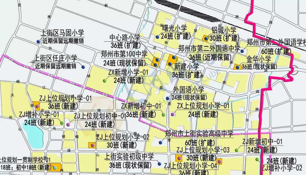 记者看到,上街区新建学校的分布,主要以锦江路两侧分布。不过在郑西客运专线以北,将会有学校连片集中区域,新规划学校数量总计5个。