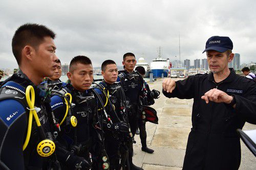 在中国海警船体查验技术培训班上,法国教员为我特勤队学员授课