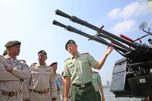 中国海警44004艇官兵为东帝汶培训学员进行船艇基本情况介绍