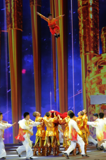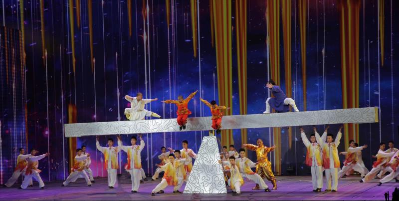 由河南少林塔沟武校58名学员表演的武术节目《双雄会》,是历年春晚来首次将少林与武当同台演出,节目通过少林与太极一刚一柔的完美结合,展现出中华民族浓厚的传统文化韵味,在之前的每一次彩排中,都引起了现场观众的共鸣。