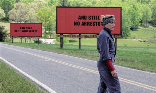 弗兰西斯·麦克多蒙德饰演的米尔德雷德,人到中年,女儿外出时被奸杀,警察破案几个月也毫无进展,她一怒之下买下高速公路旁的三块广告牌,在上面控诉警方办案无能,将矛头直接对准警察局局长威洛比。警察局长早就身患绝症,因为这三块广告牌,警察局长、米尔德雷德以及小镇上的其他人,都不得不面对一系列变化。