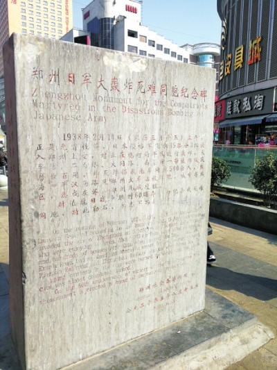 “郑州日军大轰炸死难同胞纪念碑”的背面