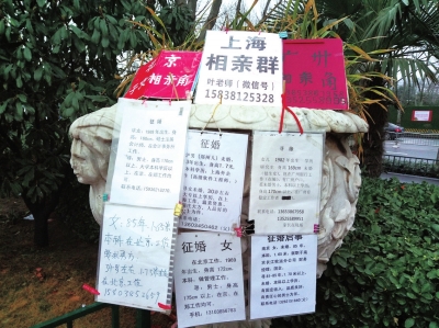 像吴女士这种情况的,还有不少老人。60多岁的张老太,来相亲角也十多次了,俨然成了这里的“名人”,许多人都认识她。张老太说,仅手中替儿子征婚的纸板都换了好几个了,这次专门到打印店塑封了一下,她半开玩笑地说,再也不怕弄坏,刮风下雨也淋不着了。张老太告诉记者,其间也有合适的,但孩子由于工作忙,抹不开面子,一直不愿意见。作为父母,为了孩子的婚事头发都愁白了,“如今也没有好的办法,总不能撵着啊,还得继续给儿子找。”
