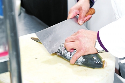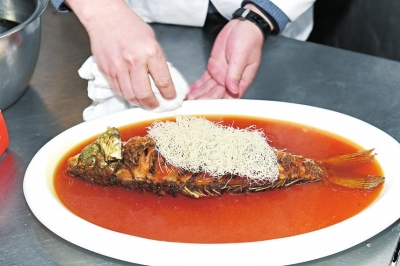 糖醋软熘黄河鲤鱼焙面制作过程 记者平伟摄影
