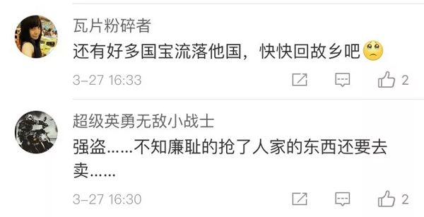 拍卖消息的不胫而走和令人震惊的信件内容,让许多中国民众愤慨不已,昨天中国日报相关报道的评论中也不乏惋惜的声音: