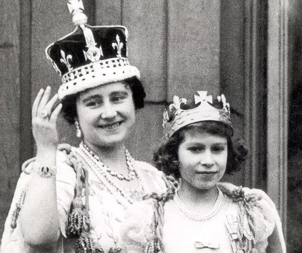 1937年,当时的伊丽莎白公主(右)与母亲合影