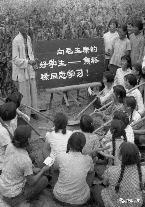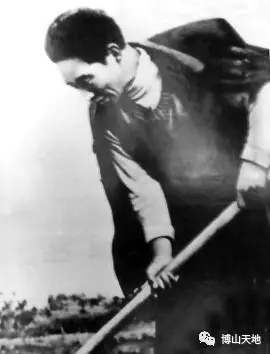 焦裕禄下乡随时与群众一起劳动,并听取群众的建议,这是他在锄地。