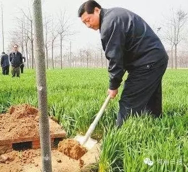 2009年4月1日,习近平在兰考县焦桐园附近一片绿油油的麦田中,亲自植苗、培土、浇水,栽下一棵泡桐