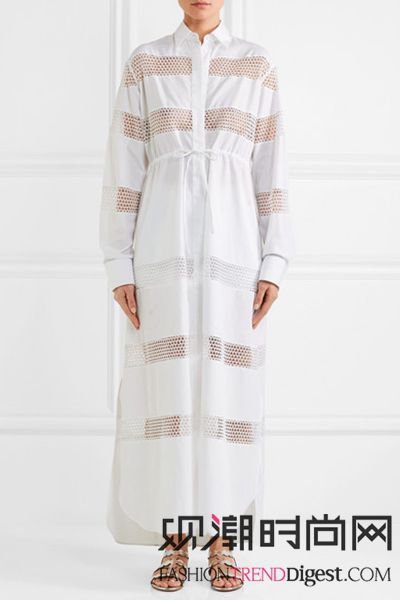 这款透气的棉质混纺超长连衣裙拼接有透视的凸花蕾丝,精美的花瓣形状图案更是独树一帜。它配有利落的领口和正面收腰的抽绳,优雅而精致的气质得益于一丝不苟的手工整饰。