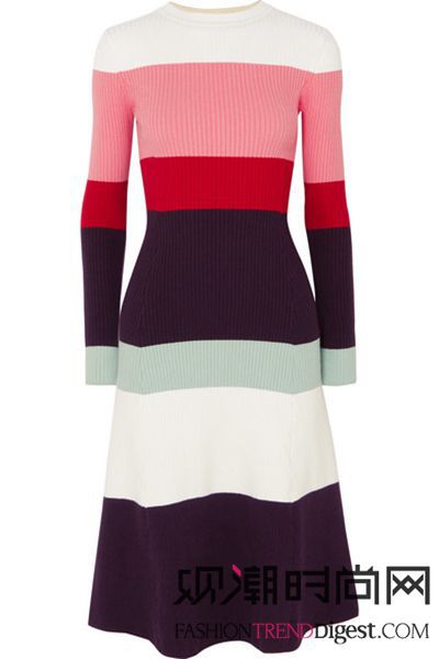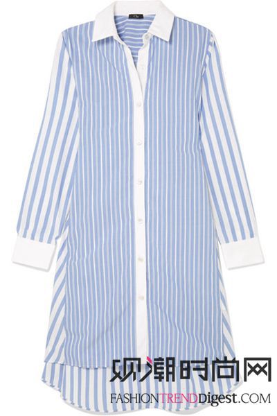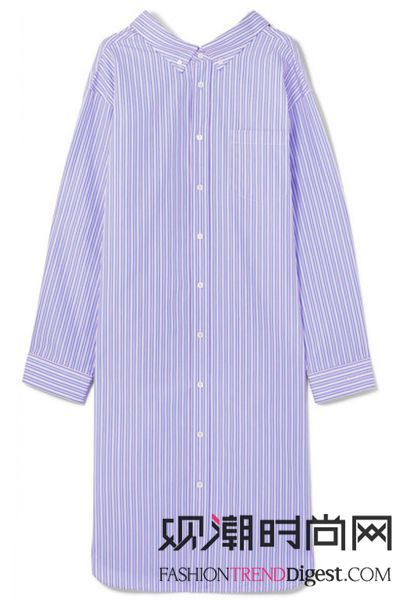 这款纯棉纽扣式连衣裙正是她的佳作。单品的灵感来源于经典的衬衫,粗细条纹的拼接对比鲜明,垂坠式下摆独具个性,腰部的系带则可收束衣身,突显凹凸曲线。