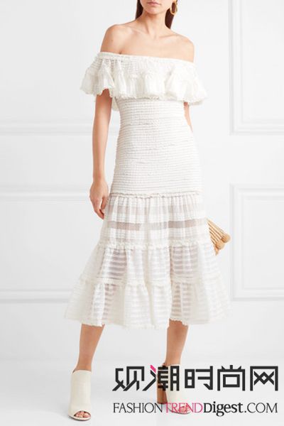 JONATHAN SIMKHAI 露肩荷叶边弹力蕾丝中长连衣裙