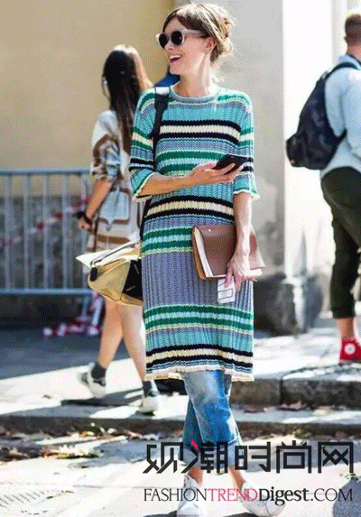 宽松的针织裙藏肉效果妥妥的,搭配牛仔裤随意休闲。而素色的针织裙,无论是牛仔裤、紧身裤,还是皮裤,都能hold住。搭配简单的一脚蹬,慵懒又时髦。