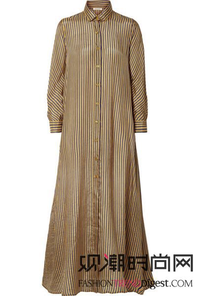 传统的衬衫式连衣裙可谓永不出错的经典选择,出自 Mes Demoiselles 2018 春夏型录的这一 “Breedy” 飘逸版本更是别具优雅风韵。它裁自条纹真丝,及踝宽松廓形则透出几分闲逸之情。