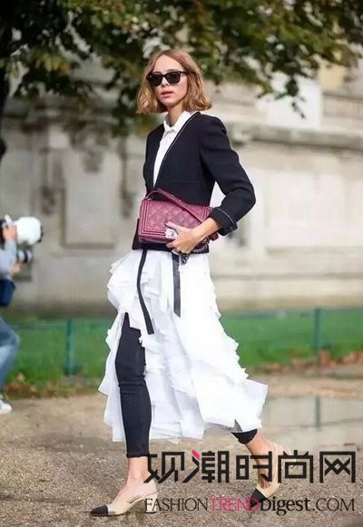 黑白搭配显得很高级,摩登女郎总是能吸引人眼球。