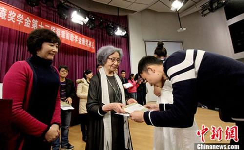 “我的心头还有一点火,我愿意把这火继续传下去。”在南开大学2017年举行“叶氏驼庵奖学金”颁奖典礼上,叶嘉莹曾这样深情讲述对后学者的期望:“一灯燃百千灯,冥者皆明,明终不尽。”(张道正)