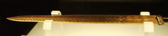 经过无损科学检测,其主要合金成分为铜、锡、铅、铁、硫等。花纹处含硫高,因为硫化铜可防锈。此剑铸造精良,形态优美,实属稀有珍品。1983年湖北江陵马山5号楚墓出土。