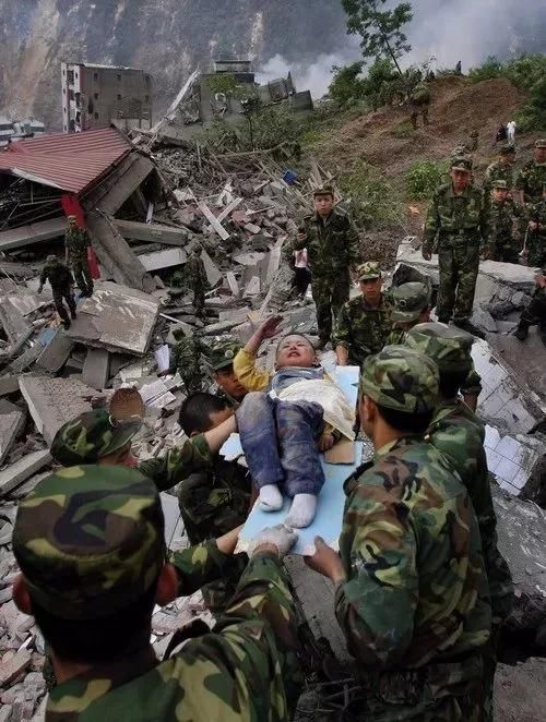 2008年5月12日,在北川灾区一片四周仍在冒烟的废墟上,一个左臂受伤的幼童躺在一块小木板做的临时担架上,用他稚嫩的右手向八位抬着他的解放军战士敬礼。这个“敬礼娃娃”名叫郎铮,人们为小郎铮得到及时救治感到欣慰,小郎铮的敬礼之举也成为百折不挠之精神的影像写照。