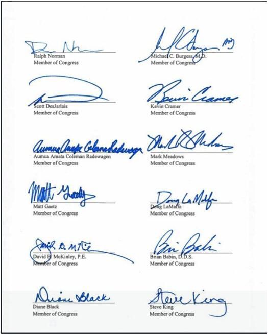 报道称,其余17名联署人包括:马克 梅多斯、玛莎 布莱克本、马特 盖茨、戴安 布莱克、斯蒂夫 金。
