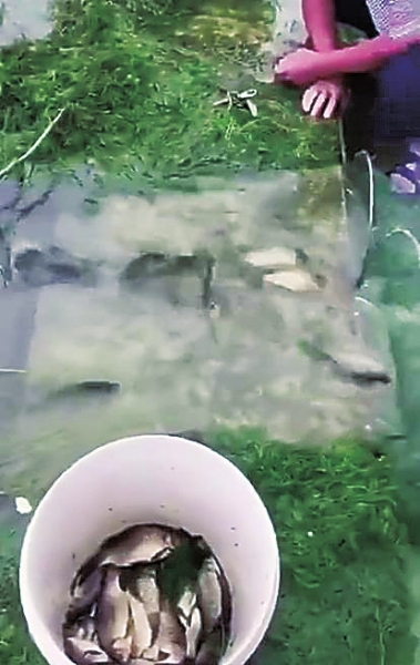 本次强降雨还导致固始县境内的多条河流水位暴涨,河边地势较低的农田被淹没。在固始县城郊,一口水塘因为水位暴涨,水从塘埂一处低洼处溢出,水塘内大量鲫鱼纷纷随着水流准备出逃。村民发现后,在水流下方用网拦住鱼儿去路,不一会儿就收获一水桶鲫鱼。