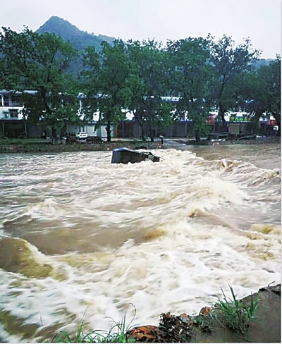 本次降雨导致信阳市浉河区谭家河乡界河村一座滚水坝被暴雨冲毁,界河村村民出行受到影响。