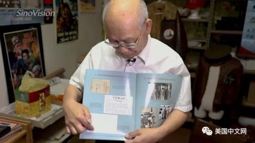 图为陈灿培向记者展示其飞虎队藏品(美国中文网/门萌萌 摄)