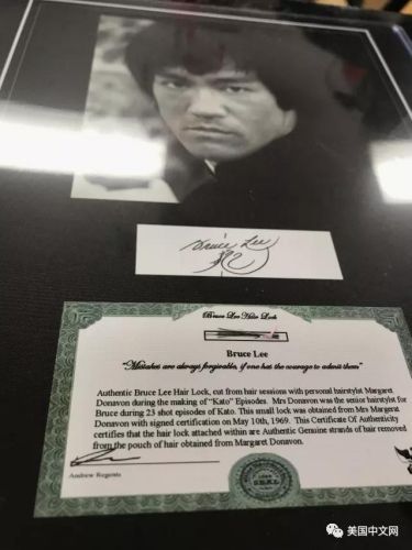 陈灿培津津乐道各个收藏品的由来,谈到李小龙头发的由来,他说道,“这个头发是好莱坞的一个理发师,他当年专门给名人理发。他挺有商业头脑的,把理过的很多名人的头发都收藏起来。其中还有猫王Elvis的。然后拿到网上卖。因为李小龙祖籍是顺德人,所以我买了几份头发,分别给了顺德、香港的博物馆。”