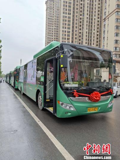 中新网郑州5月22日电(记者 韩章云)六辆公交车装饰一新、身着婚纱的新娘亲自开着头车载着新郎、亲友赶往婚礼现场……5月22日,郑州公交车车长李金可和丈夫吴楠的婚礼用车成为郑州街头一景。新人们用这种方式践行“绿色出行”理念,呼吁市民更多地选择公共交通出行。