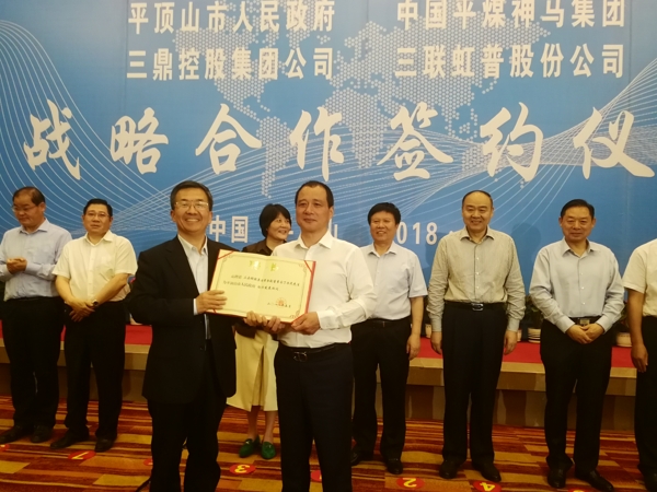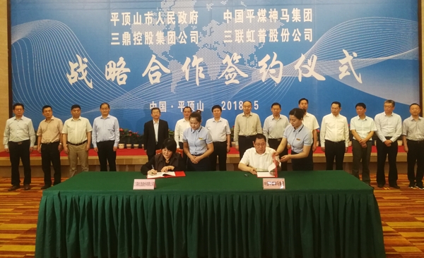 ▲北京三联虹普公司和中国平煤神马集团签订合资合作协议