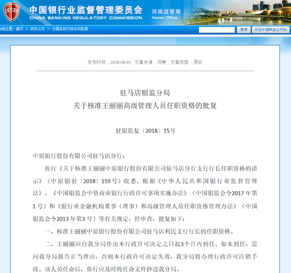 河南银监局核准10位高管任职资格 | 名单