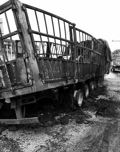 大货车的车身被烧毁武陟县交通运输局执法所供图