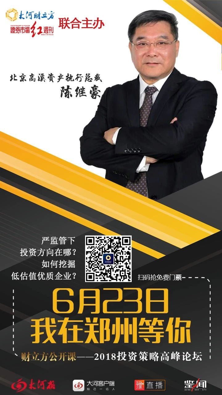 6月23日下午,“2018投资策略高峰论坛”将在河南郑州隆重启幕,届时将邀请包含陈继豪在内的四位重量级股市名家登台分享投资经验。大河报·大河财立方记者在论坛启幕前专访了“价值投资传道者”陈继豪,听他分享价值投资的秘诀。