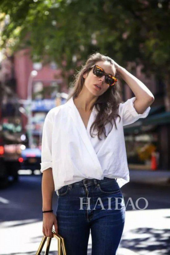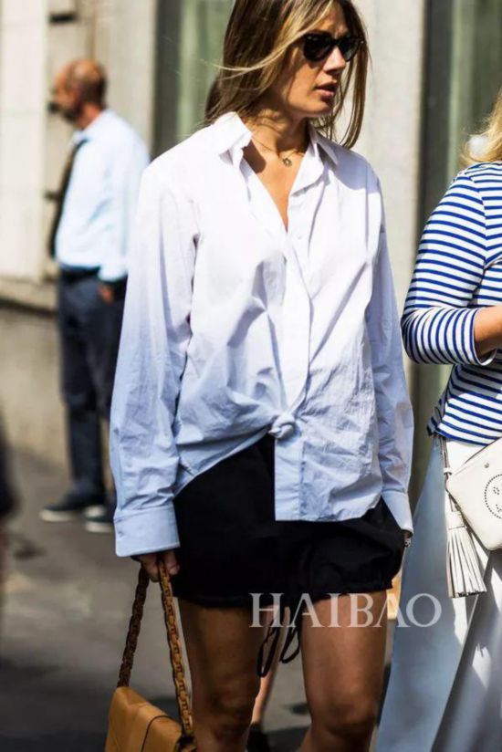 白色衬衣比较中性化,女生穿着时可以不用选择中规中矩的白衬衣,简约宽松的款式,有一定的廓形就足够了。