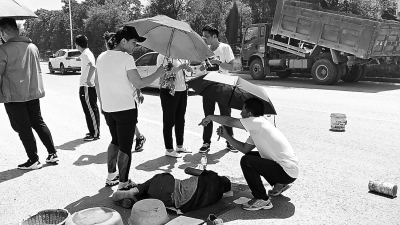 河南一老人遇车祸躺在路中间 省委政研室十几名年轻干部撑伞守候