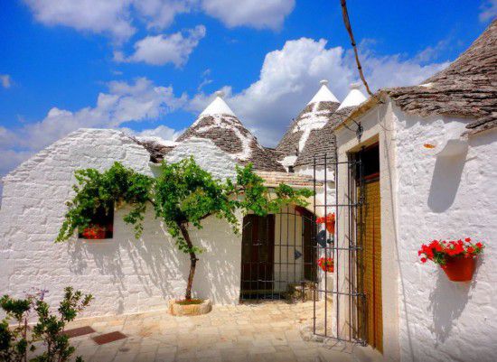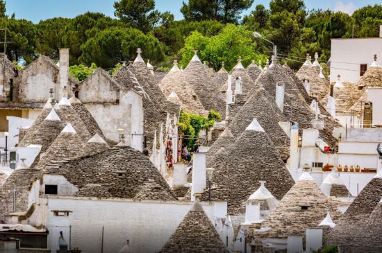 在阿尔贝罗贝洛,保存着上千座陶尔利民居,无柱无梁的圆形房舍,外墙被涂成白色,房顶用片状的岩石堆砌而成,非常有肌理感。这里举世无双的建筑风格吸引着无数的游客,错落有致、形似斗笠的屋顶,只一眼,便难忘。
