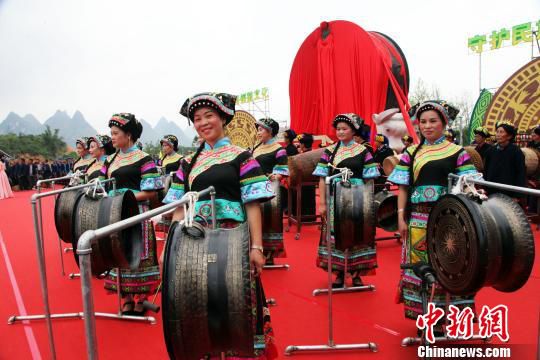 铜鼓是中国古代南方少数民族及东南亚一些地区最具代表性的文物,史学界有“北鼎南鼓”之说。在广西壮、瑶族民众心中,铜鼓是吉祥之物,是最神圣、最具威信的器物。广西河池享有“世界铜鼓之乡”美誉,目前全世界现存传世铜鼓约2400面,河池就有1400多面。(完)