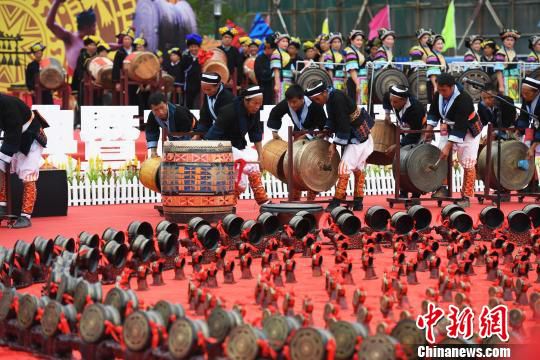 广西直径6.68米巨鼓刷新吉尼斯纪录 千鼓同奏贺“鼓王”